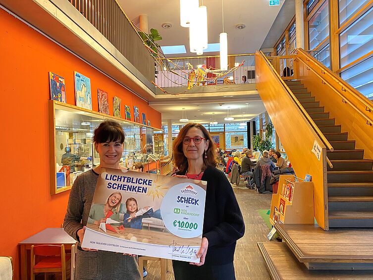 Berlin/Lichtenau, 12. Dezember 2024 – Der Mittagstisch im Familienzentrum im SOS-Kinderdorf Berlin erhält in diesem Jahr eine finanzielle Unterstützung der Aktion „Lichtblicke schenken“ der Lichtenauer Mineralquellen in Höhe von 10.000 Euro. Die Zuwendung ermöglicht es dem Familienzentrum weiterhin, Familien und Bedürftige aus der Nachbarschaft montags bis freitags mit einem kostengünstigen und frischgekochten Mittagessen zu versorgen. Den symbolischen Scheck übergab Grit Hörnlein, Senior Verkaufsleiterin Handel und Gastronomie, von den Lichtenauer Mineralquellen heute in Moabit im Rahmen eines gemeinsamen Mittagessens in der Cafeteria des Mehrgenerationenhauses an das SOS-Familienzentrum.